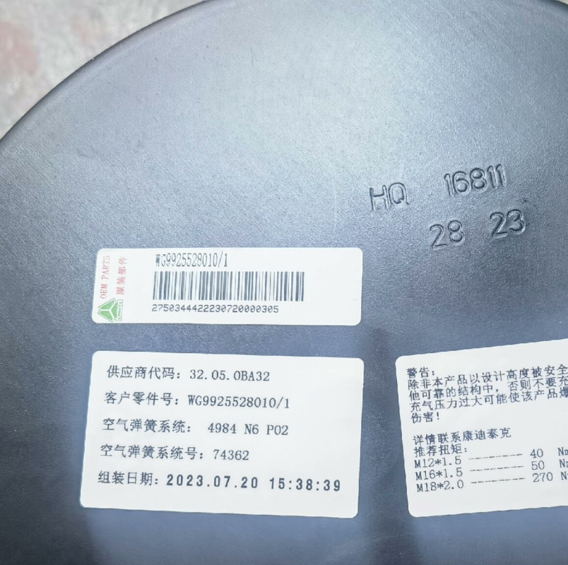 Назначение: Оригинальная запчасть Пневмоподушка, задняя, в сборе WG9925528010 производства Sitrak. Полное соответствие заводским стандартам.