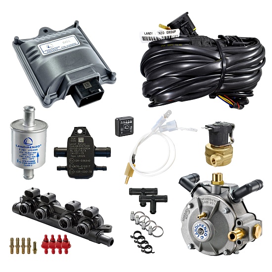 Полный комплект оборудования для систем компримированного природного газа (CNG / метан) 4 поколения на 4-цилиндровые двигатели. Включает электронный блок управления LR EVO L, двухступенчатый редуктор высокого давления Tomasetto AT12 мощностью 185 кВт и инжекторную рампу AEB E с артикулом IT-00003134. Все компоненты произведены в Италии, сертифицированы по стандартам ECE R110 и ISO 15500. Обеспечивают стабильную подачу газа, точное дозирование и надежность итальянского производства .