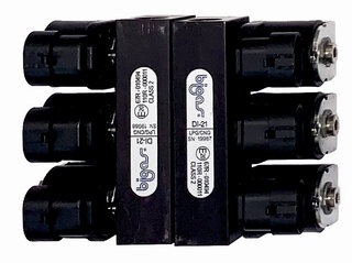 Блок газовых инжекторов (дозаторная рампа) BIGAS модели D1-21 FH 6C для 6-цилиндровых двигателей. Артикул INJHS201600. Произведен в Польше компанией BIGAS Sp. z o.o. Предназначен для систем секвентального впрыска газа (LPG 4 поколения). Шесть быстродействующих дозаторов на общей рейке, мощность до 225 л.с. Отдельный компонент — для работы требуются ЭБУ, редуктор и фильтры.